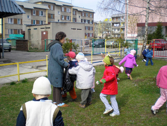 Ze względu na złą pogodę dzieci z przedszkola włączyły się do akcji dopiero w poniedziałek. Z wielkim zapałem cztero – i pięciolatki posprzątały okolice przedszkola, a sześciolatki pobliski brzeg jeziora. Najmłodsze dzieci wezmą czynny udział w akcji już za rok. Przedszkolaki w nagrodę zajadały się kiełbaskami pieczonymi na grillu. |
