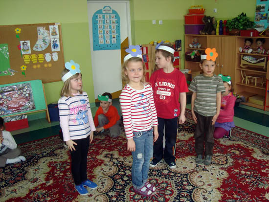 29 marca 2012 r. w grupie „Tęczowych motyli” odbyły się kolejne zajęcia otwarte dla rodziców. Tym razem dzieci miały okazję pochwalić się przed gośćmi swoimi umiejętnościami matematycznymi. Tematem przewodnim zajęć była nadchodząca wiosna. Zajęcia rozpoczęły się od przeczytania listu otrzymanego wraz z tajemniczą paczką, w której znalazły się krokusy, bazie, przebiśniegi i forsycje czyli zwiastuny nadchodzącej wiosny. Po obejrzeniu zawartości paczki przedszkolaki szybko domyśliły się, że list został napisany przez panią Wiosnę. Poprosiła ona dzieci o wykonanie kilku zadań. 6-latki musiały więc grupowo i indywidualnie przeliczać i porównywać ilość zwiastunów wiosennych. Wysłuchały także wiersza o mieszkańcach łąki i na jego podstawie określały ich liczebność oraz kolejność występowania. Jedną z atrakcji zajęć było wykonywanie prostych działań matematycznych polegających na dodawaniu i odejmowaniu przy użyciu żywych liczmanów. Wcieliły się w nie same dzieci, które naśladowały mieszkańców wiosennej łąki. Wszystkim podobała się taka forma „żywej” matematyki. Na koniec dzieci przy czynnej pomocy rodziców wykonały wspólną pracę plastyczną przedstawiającą wiosenną łąkę i jej mieszkańców. |