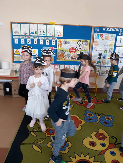 Jak co roku 17 lutego obchodzimy Dzień Kota. Grupa „Puchatków” również przyłączyła się do obchodzenia tego święta, dlatego też dzieci w tym dniu przyszły ubrane na biało, brązowo lub czarno. Wcześniej przygotowały sobie opaski z kotkiem. Spotkanie odbyło się wspólną zabawą przy „kociej muzyce”. Oprócz tańców dzieci oglądały ilustracje przedstawiające różne koty, te domowe i dziko żyjące. Zapoznały się z kocimi obyczajami oraz sposobem pielęgnacji kotów. Nie obyło się również bez kocich zabaw takich jak: koci spacerek, zabawy z włóczką, zagadek, jak również „Puchatki” wysłuchały bajki „Kot w butach”. Na koniec wykonały portret kota. Celem zajęć było podkreślenie znaczenia kotów w życiu człowieka oraz zwrócenie uwagi na los porzuconych i bezdomnych zwierząt. |