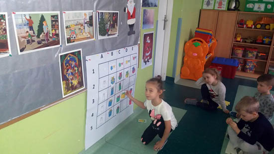 We współczesnym zglobalizowanym świecie, programowanie jest nieodzownym elementem życia każdego człowieka i dlatego 4-latki 2 „Niedźwiadki” systematycznie są wprowadzane w świat kodowania poprzez realizację zadań z innowacji „Ekoludek mistrzem kodowania”. W dniach 21–22 grudnia czterolatki przeniosły się w świat gier i zabaw. „Uzupełnij pola” to pierwsze wyzwanie. Poprzez wypełnienie pól na kratownicy grafikami w odpowiedniej kolorystyce „Niedźwiadki” rozwijały spostrzegawczość oraz uwagę. „Ustaw zgodnie z kodem” to gra, która pozwoliła dzieciom zapoznać się z dużą matą. Zadanie polegało na ustawieniu kubeczków na kolorowej macie zgodnie z ilością wyrzuconych oczek i kolorem na kostce. Gra ta świetnie uczy logicznego myślenia, planowania, utrwala znajomość kolorów oraz zdolność przeliczania. Wielką frajdę sprawiła dzieciom gra dydaktyczna „Statki”. Dzieciaki chodząc po macie zgodne z zakodowaną informacją odkrywały ją na nowo. Ponadto gra „Statki” udoskonaliła naukę liczenia, orientację w schemacie własnego ciała oraz na macie. Same plusy poprzez piękną zabawę. Nauka kodowania to nie tylko wspaniała zabawa, ale też nauka logicznego myślenia, zadaniowego podejścia do stawianych problemów oraz umiejętności pracy w zespole. Przedszkolaki uczą się radzić sobie w trudnych sytuacjach, poszukiwać nowych rozwiązań, dokonywać najlepszych wyborów, a przede wszystkim radzić sobie z porażką. Zajęcia z kodowania pozwalają dziecku czuć się w przedszkolu świetnie oraz poznawać nowe rzeczy. Poprzez uczestnictwo w innowacyjnych zajęciach będącym wstępem do programowania przedszkolaki stają się stroną „aktywną”, a nauczycielki pozostają z boku zawsze chętne do pomocy zgodnie z ideą edukacji przez działanie. |