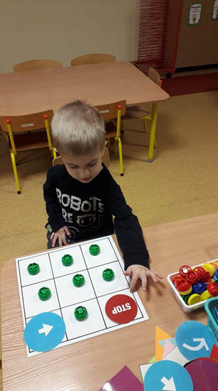 W grudniu 2020r. grupa 4-lat.4 "Śliweczki" rozbudzała zainteresowania matematyczno-przyrodnicze z wykorzystaniem małych mat i koreczków. Natomiast w styczniu 2021r. realizowane były scenariusze zajęć z Innowacji Pedagogicznej "Od kodowania do programowania". Nauczycielki rozwijały inteligencję logiczno-matematyczno-przestrzenną. Dzieci "Dokarmiały ptaki", tworzyły na macie zbiory ptaków pozostających na zimę i układały obrazki według kryterium: co zjada sikorka? co zjada jemiołuszka? Śliweczki poszerzały wiedzę na temat potrzeb żywieniowych wybranych ptaków, śledziły i naśladowały lot - od lewej do prawej. Dzieci także odczytywały " List od wróżki", odkodowywały informację za pomocą symboli graficznych i strzałek kierunkowych tworzyły kod- drogę Królewicza. W poszukiwaniu Królewny powstawały własne kombinacje: krótka droga z kubeczków czy zawiła droga. Wszystkie dzieci uczestnicząc w zajęciach wyzwalały pozytywne emocje. Odkodowały "Przygody Kubusia Puchatka". Z zaangażowaniem naśladując aktywności "brykającego Tygryska", mlaskanie i mruczenie Puchatka czy marudzenie Królika. Dzieci chętnie bawiły się i solidarnie analizowały dane- sposób spędzania czasu mieszkańców w lesie. Każde dziecko miało możliwość ofiarowania urodzinowej przyjemności książkowemu bohaterowi. Wszystkie zabawy- zajęcia z "Matą do kodowania" sprawiły przedszkolakom ogromną radość, rozwijały myślenie i sprzyjały dziecięcemu rozumowaniu. Dzisiaj "Śliweczki" już wiedzą, że kodowanie to zabawa, to wspólna droga w odkrywaniu siebie, drugiego człowieka i świata. |