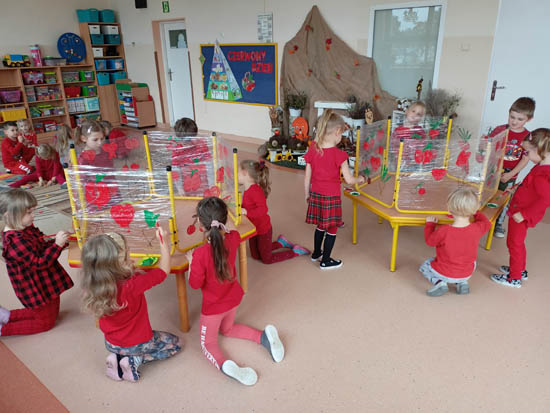 Od 24 października przez cztery kolejne dni w grupie 4/5-latki trwał kolorowy tydzień, czyli cykl zajęć dydaktycznych o tematyce zdrowego odżywiania. Działo się to w ramach realizacji zadania z projektu ekologicznego zatytułowanego „Owocowo-witaminowy ogród Ekoludkowy”, do realizacji którego zostały pozyskane fundusze z Konkursu Małych Grantów z Ełckiego Stowarzyszenia Ekologicznego przy współpracy z Centrum Edukacji Ekologicznej. I tak przedszkolaki przychodziły do przedszkola przebrane na żółto, biało, czerwono, zielono i pomarańczowo. |