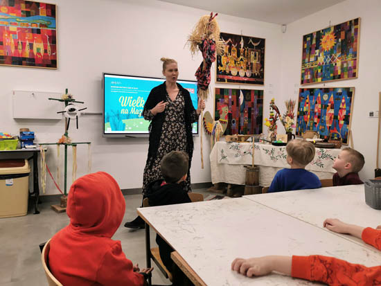 W związku ze zbliżającymi się Świętami Wielkanocnymi, przedszkolaki z grup 5-latki 2 „Skrzaty” i 5-latki 3 „Króliczki” wzięły udział w zajęciach edukacyjnych pt. „Wielkanoc na Mazurach”, które odbyły się w Muzeum Historycznym w Ełku. Podczas spotkania dzieci poznały tradycje i zwyczaje wielkanocne związane z malowaniem jajek, wykonywaniem palm wielkanocnych oraz śmigusem dyngusem. Urozmaiceniem pobytu w muzeum było wspólne wykonanie świątecznej ozdoby – wielkanocnego baranka. |