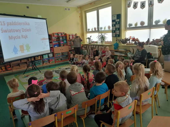 W grupach 4-latki 1 i 6-latki 4 odbyły się zajęcia dydaktyczne na temat zdrowia. Zajęcia poprowadziła Pani z Powiatowej Inspekcji Sanitarno-Epidemiologicznej w Ełku. Dzieci obejrzały prezentację multimedialną pt.: „Aby zdrowym być trzeba ręce myć”, a także uczestniczyły w pokazie prawidłowego mycia rąk, jak właściwie powinno się myć ręce, żeby zmyć ewentualne bakterie, wirusy i pasożyty szkodliwe dla zdrowia. |