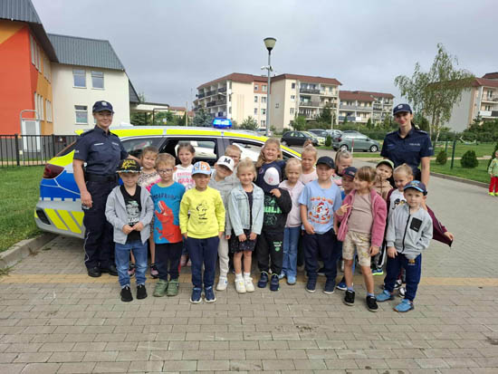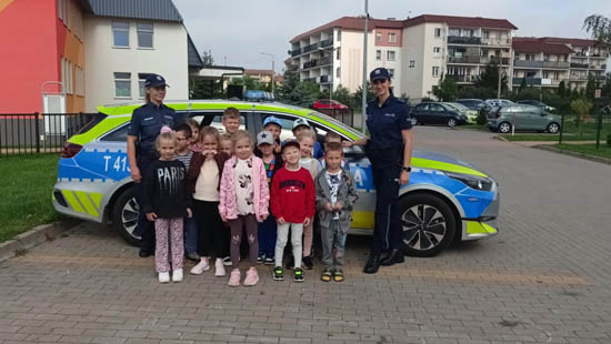 W ramach akcji "Bezpieczny przedszkolak" w dniu 12.09.2025r do naszego przedszkola przybyły panie policjantki z Komendy Powiatowej Policji w Ełku. Głównym celem wizyty było przypomnienie podstawowych zasad bezpieczeństwa oraz zapoznanie z zawodem policjanta. Panie przybliżyły dzieciom zasady bezpiecznego poruszania się po drogach, utrwaliły znajomość niektórych znaków drogowych, przypomniały numery alarmowe, które każdy przedszkolak powinien znać. Podczas spotkania dzieci zadawały pytania i dzieliły się swoimi doświadczeniami. Dużą atrakcją był radiowóz policyjny, zaparkowany na placu naszego przedszkola. Dzieci mogły do niego wsiąść i obejrzeć z bliska, a najwięcej radości wzbudziło włączenie sygnałów alarmowych. Serdecznie dziękujemy. |