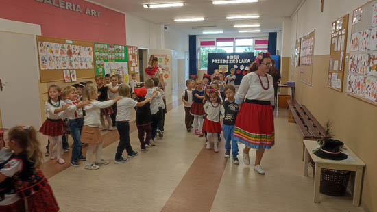 22 września nasze 5-latki wspólnie obchodziły Dzień Przedszkolaka na ludowo. Przebrały się w piękne stroje, więc nie mogło obyć się bez pokazu mody! Grozik, krakowiak i inne tańce wykonane przez nasze przedszkolaki, z pewnością zbudowały w dzieciach poczucie tożsamości kulturowej. To był wspaniały czas! |