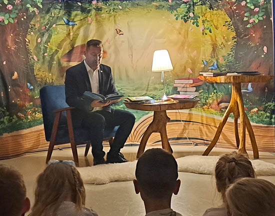 "Czytanie książek to najpiękniejsza zabawa, jaką sobie ludzkość wymyśliła..." W. Szymborska W przedszkolu zakończyła się druga edycja akcji czytelniczej "Poczytaj mi...".Przez cały tydzień dzieci miały okazję słuchać bajek, opowiadań i wierszy czytanych przez wyjątkowych gości - przedstawicieli władz miasta, instytucji oraz lokalnej społeczności. Tydzień wspólnego czytania otworzył Prezydent Miasta Ełku Tomasz Andrukiewicz oraz Dyrektor Przedszkola "Ekoludki" Anna Sierotko. W kolejnych dniach odwiedzili nas także: Starosta Powiatu Ełckiego Marek Chojnowski, Wicedyrektor Przedszkola "Ekoludki" Małgorzata Ignatowicz, przedstawicielka Komendy Powiatowej Policji w Ełku Agata Kulikowska - Nałęcz, przedstawiciele Straży Miejskiej Sylwia Anuszkiewicz, Tomasz Oleksa, przedstawiciele Muzeum Historycznego Jakub Knyżewski, Dariusz Jurczak, psycholog z Zespołu Szkół nr 1 im. Jędrzeja Śniadeckiego Monika Drobińska wraz z uczennicami, nauczyciel Szkoły Podstawowej nr 1 Emilia Górska wraz z uczniami. Każdy z gości z ogromnym zaangażowaniem czytał naszym przedszkolakom. Dzieci słuchały z zachwytem oraz odpowiadały na pytania dotyczące przeczytanych opowieści. Dziękujemy wszystkim gościom za wspólnie spędzony czas i za to, że razem pokazaliśmy dzieciom, jak piękny jest świat literatury. „Poczytaj mi” to akcja, która na pewno zostanie z nami na dłużej! |
