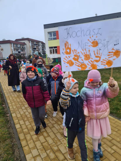 Przedszkole aktywnie włączyło się w kampanię "Pomarańczowej Wstążki", promującej ideę dzieciństwa bez przemocy, pełnego szacunku, bezpieczeństwa i zrozumienia. W ramach akcji odbyły się: · Happening na terenie przedszkola i w jego okolicy, · Rozdawanie przechodniom pomarańczowych wstążek, jako symbolu sprzeciwu wobec przemocy, · Zajęcia dydaktyczne dotyczące emocji, szacunku, i sposobów radzenia sobie w trudnych sytuacjach, · Wizyta Pań z MOPSu, które w przystępny sposób opowiedziały o bezpieczeństwie i dbaniu o sobie, · Dzień pomarańczowego ubioru, · Wystawa prac plastycznych "Dzieciństwo bez przemocy", przygotowana przez nasze przedszkolaki, · Wspólne śpiewanie piosenki o tolerancji i równości. Dziękujemy wszystkim dzieciom, rodzicom oraz gościom za zaangażowanie i wsparcie w tak ważnej inicjatywy. Razem tworzymy bezpieczne i pełne empatii środowisko dla naszych najmłodszych. |