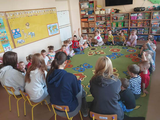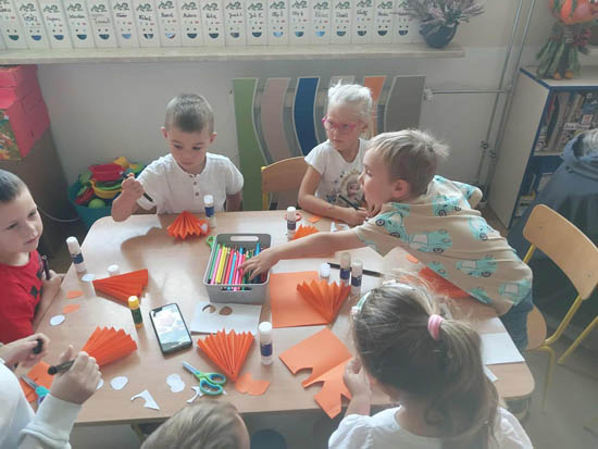 Dnia 13.10.25 roku grupę "Liski" z Przedszkola nr 1 "Ekoludki " odwiedzili wolontariusze z I Liceum Ogólnokształcącego im. Stefana Żeromskiego w Ełku. Na początku spotkania przedszkolaki dowiedziały się: Kto to jest Wolontariusz? Czym się zajmuje? Następnie wszyscy aktywnie uczestniczyli w zabawie Kalambury. Później dzieci wykonali zwierzęta techniką origami, ponieważ w październiku obchodzimy Światowy Dzień Zwierząt i Dzień Origami. Z zadaniem wszystkie dzieci poradziły sobie doskonale wykonując: żabki, liski, zajączki i pieski. Spotkanie zakończyło się wspólną zabawą przy piosence pt: "Idziemy do zoo". |
