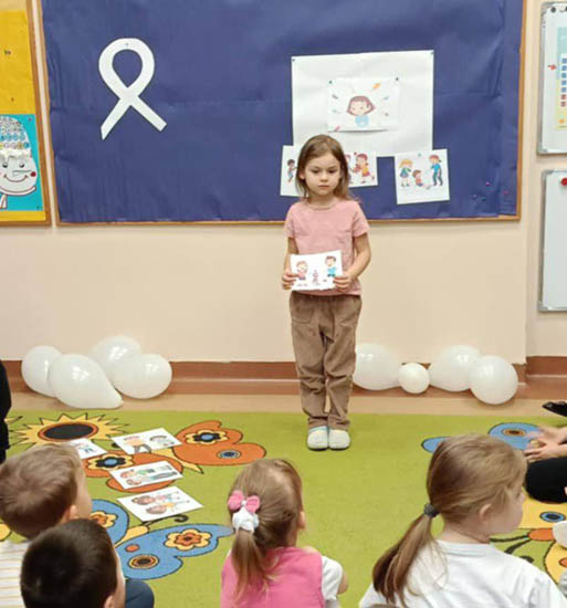 W ramach kampanii Biała Wstążka grupy 5 latki 3 „Liski” i 5 latki 4 „Poziomki” zrealizowały zajęcia poświęcone budowaniu postaw opartych na szacunku, życzliwości i bezpieczeństwie. Przedszkolaki rozmawiały o emocjach, sposobach radzenia sobie ze złością oraz o tym, jak rozwiązywać konflikty bez krzyku i przemocy. Dzieci stworzyły plakat „Stop przemocy” i uczyły się jak mogą poprosić o pomoc, a także jak wspierać kolegów i koleżanki w trudnych sytuacjach. Udział w kampanii przypomniał nam wszystkim, że nawet najmłodsze dzieci mogą uczyć się empatii, szacunku i dbania o siebie nawzajem – a wspólne działania i zabawa z białymi wstążkami pomagają budować atmosferę bezpieczeństwa w całej społeczności przedszkolnej. |