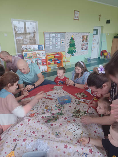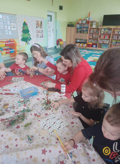 3 grudnia odbyły się wyjątkowe zajęcia pełne magii i radosnej atmosfery - zajęcia otwarte z rodzicami – „Świąteczne tradycje” w grupie 4-latki 4 „Muchomorki”. Podczas zajęć wspólnie odgadywaliśmy świąteczne zagadki, przeliczaliśmy bombki na choince oraz bawiliśmy się przy muzyce w świątecznym klimacie. Największą atrakcją były warsztaty ozdabiania drewnianych ozdób choinkowych, podczas których każdy mógł stworzyć coś naprawdę niepowtarzalnego. Nie zabrakło też zimowych smaków – można było skosztować aromatycznej herbatki z cynamonem, kardamonem, goździkami i sokiem malinowym. To był piękny czas spędzony wspólnie z dziećmi, pełen uśmiechów, twórczej zabawy i integracji naszej przedszkolnej społeczności. Dziękujemy wszystkim za obecność! |