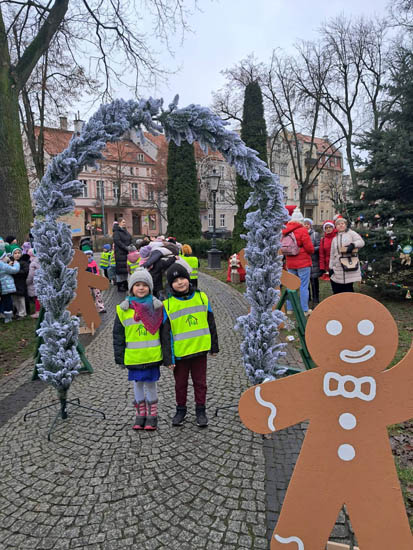 Po raz kolejny mieszkańcy Ełku spotkali się w Parku Solidarności, by wspólnie ubrać choinkę. A wszystko za sprawą pięknej inicjatywy organizowanej przez Fundacja Odpowiedzialni Za Marzenia. Wydarzenie stało się nie tylko okazją do stworzenia świątecznej atmosfery, lecz także ważnym symbolem jedności i zaangażowania społecznego. Oczywiście nie mogło tam zabraknąć dzieci z naszego przedszkola. 6 latki 1 "Jagódki" powiesiły na choince bombki, które wcześniej same przygotowały. Miały również okazję do zaprezentowania swoich umiejętności wokalnych. Pięknie wystąpiły na scenie śpiewając piosenkę o choince. Dla wielu mieszkańców był to jeden z najcieplejszych momentów rozpoczynającego się okresu przedświątecznego – przypomnienie, że to właśnie wspólnota i radość tworzą prawdziwą magię Świąt. |